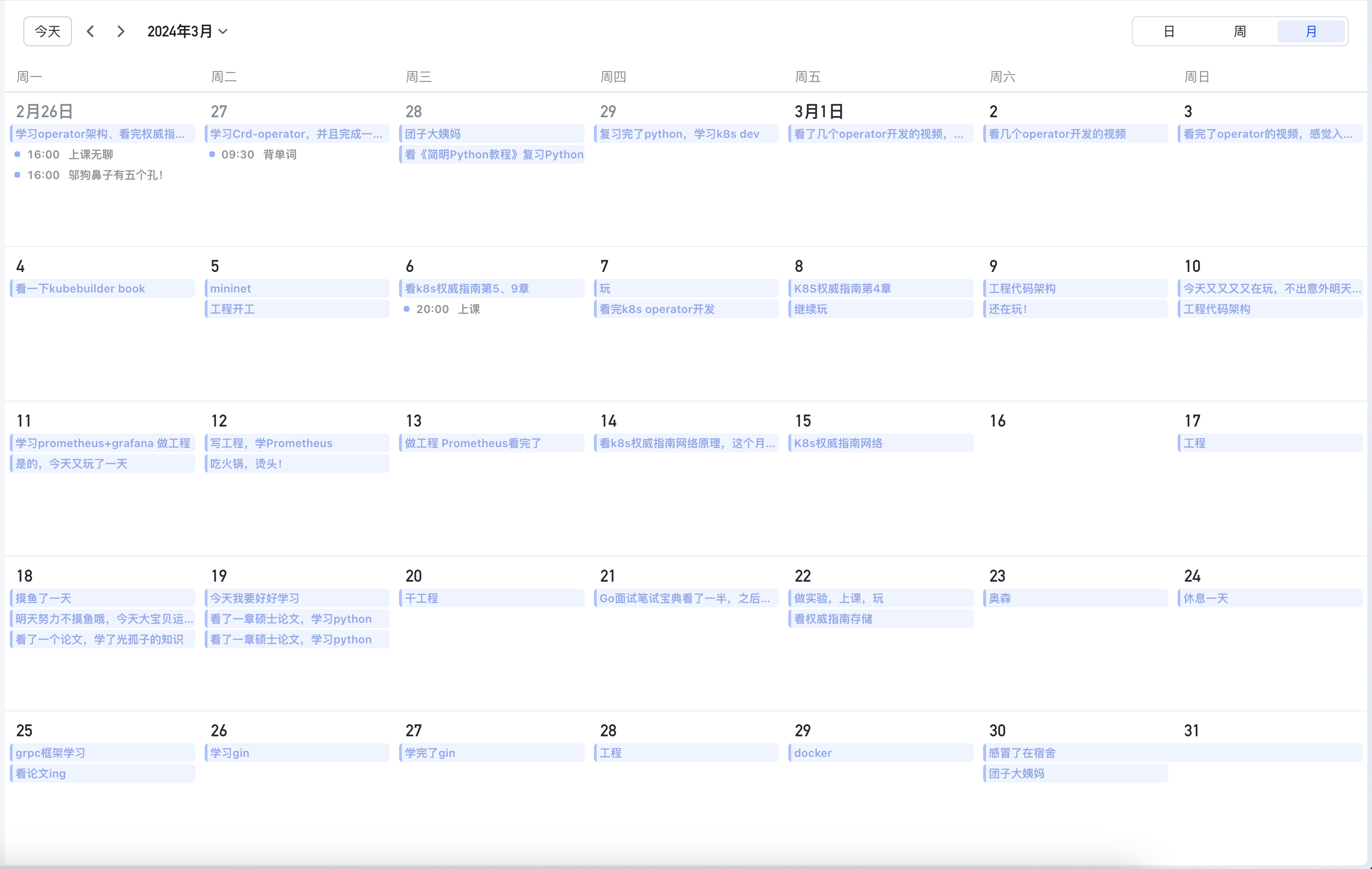 一直到10月份,都是在摸鱼和学云原生技术上度过了,简历上也有了一些可以写的东西,都是这一年学习的,也算是在用研究生的两年补齐了本科四年的课程吧。