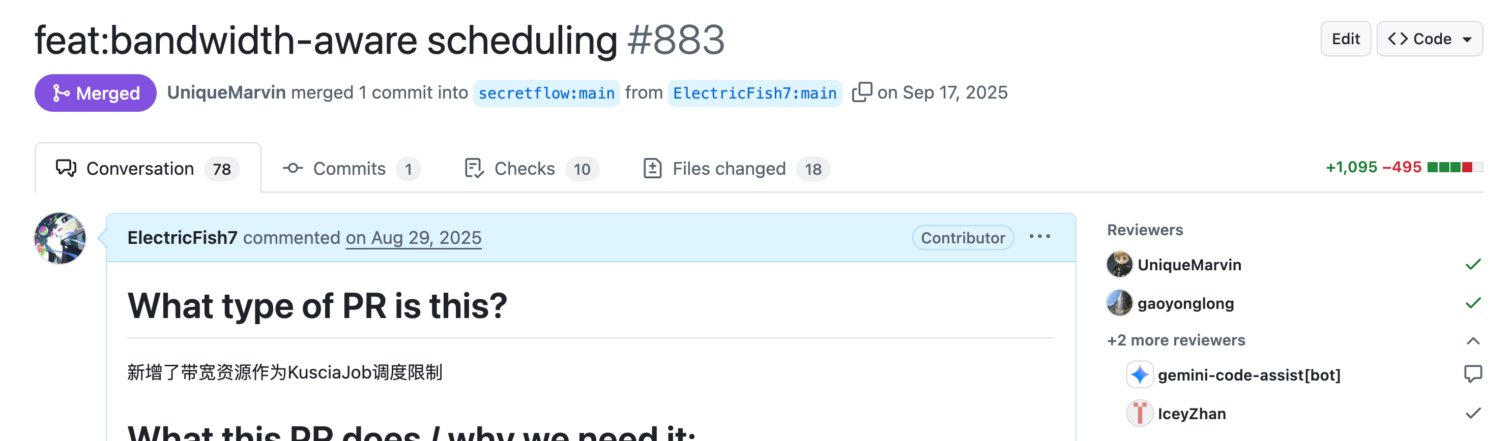 这个项目完成后,实验室开始了攻坚五十天活动,带着我的大显示器和电脑搬到了楼上,一起集中办公,偶然间收到了一条推送,说GLCC的申请延迟了,我大致浏览了一遍项目列表,发现了Kuscia支持带宽调度这个项目,因为之前volcano项目,对于volcano这种自定义调度器和K8S调度框架都有学习,kuscia这个项目看起来似乎很简单,可能两三天就可以完成了,所以申请了一下,在用一个小时写完了项目申请书后,就附带着简历一起发给了导师邮箱,第二天导师看到后,就拉着社区运营小姐姐一起开了会,完成了一个小小的面试,之后过了几天就通知入选了。