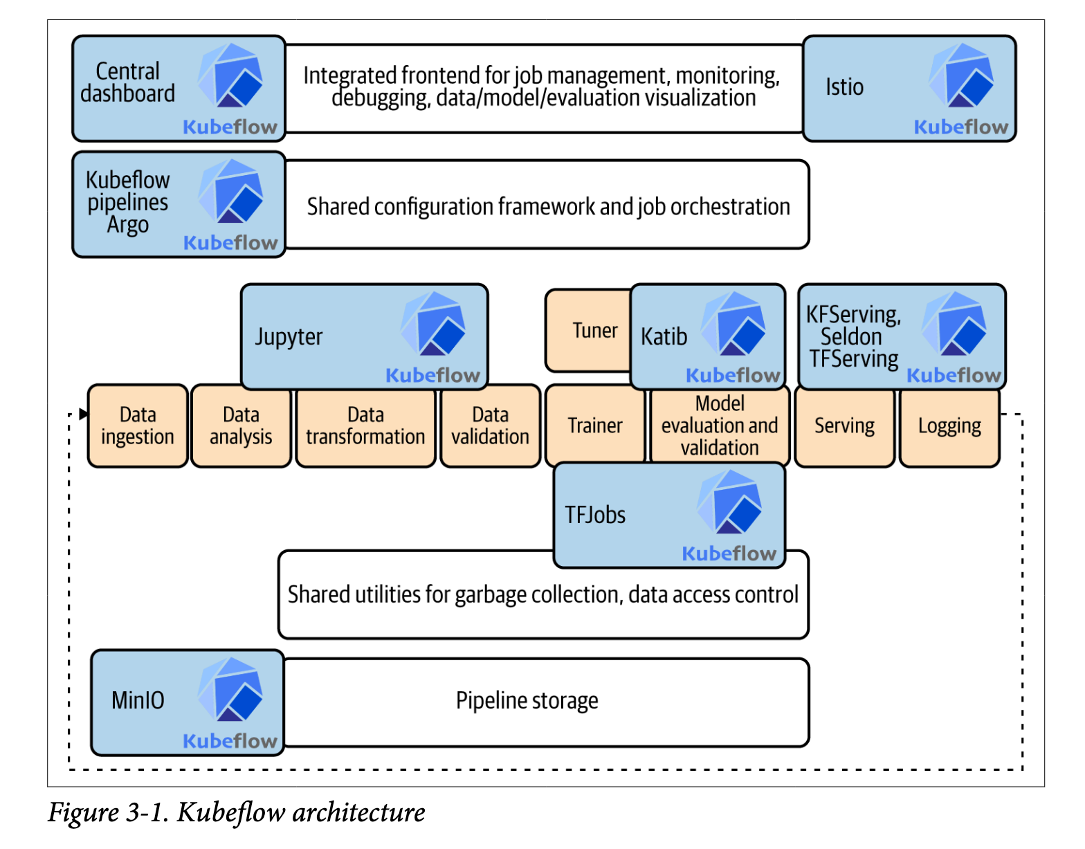 流水线架构的基础是共享存储。如今,一种常见的做法是将数据保存在外部存储中。不同的云提供商有不同的解决方案,如亚马逊S3、Azure数据存储、谷歌云存储等。解决方案的多样性使得将解决方案从一个云提供商移植到另一个云提供商变得复杂。为了最大限度地减少这种依赖性,Kubeflow附带了MinIO,这是一款高性能分布式对象存储服务器,专为大规模私有云基础设施而设计。不仅仅是私有云,MinIO还可以充当公共API的一致网关。
