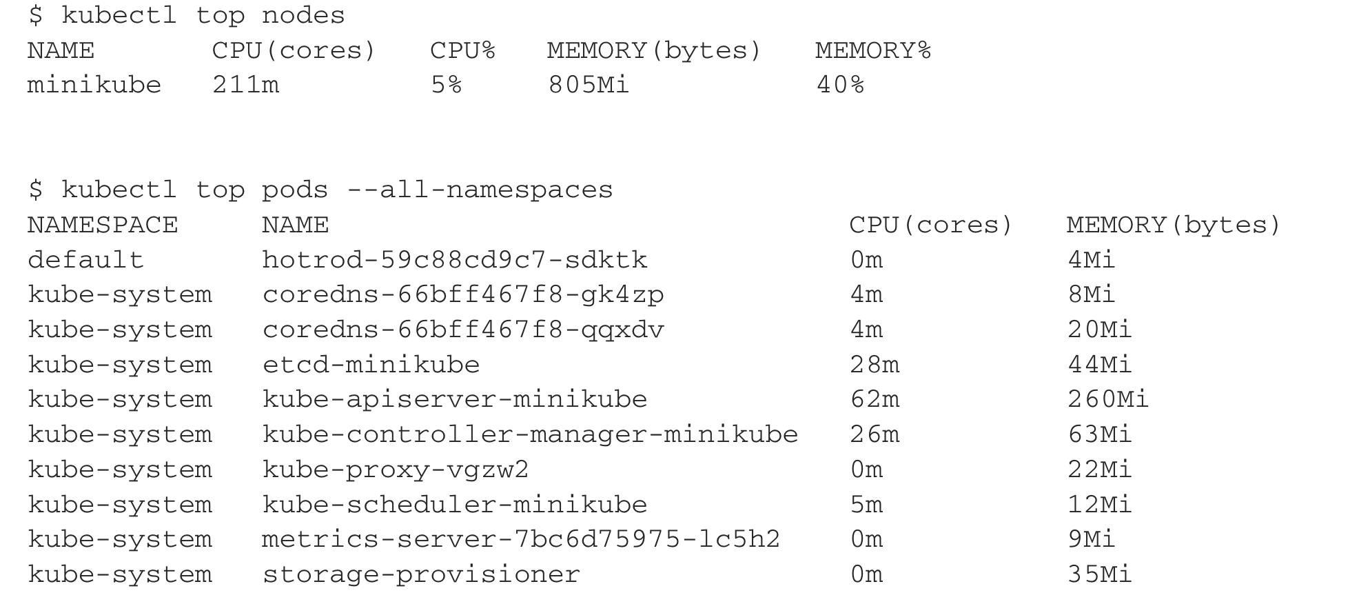 Kubernetes 使用称为指标服务器的可选组件提供基本指标。可以通过运行以下命令在 minikube 中启用指标服务器: