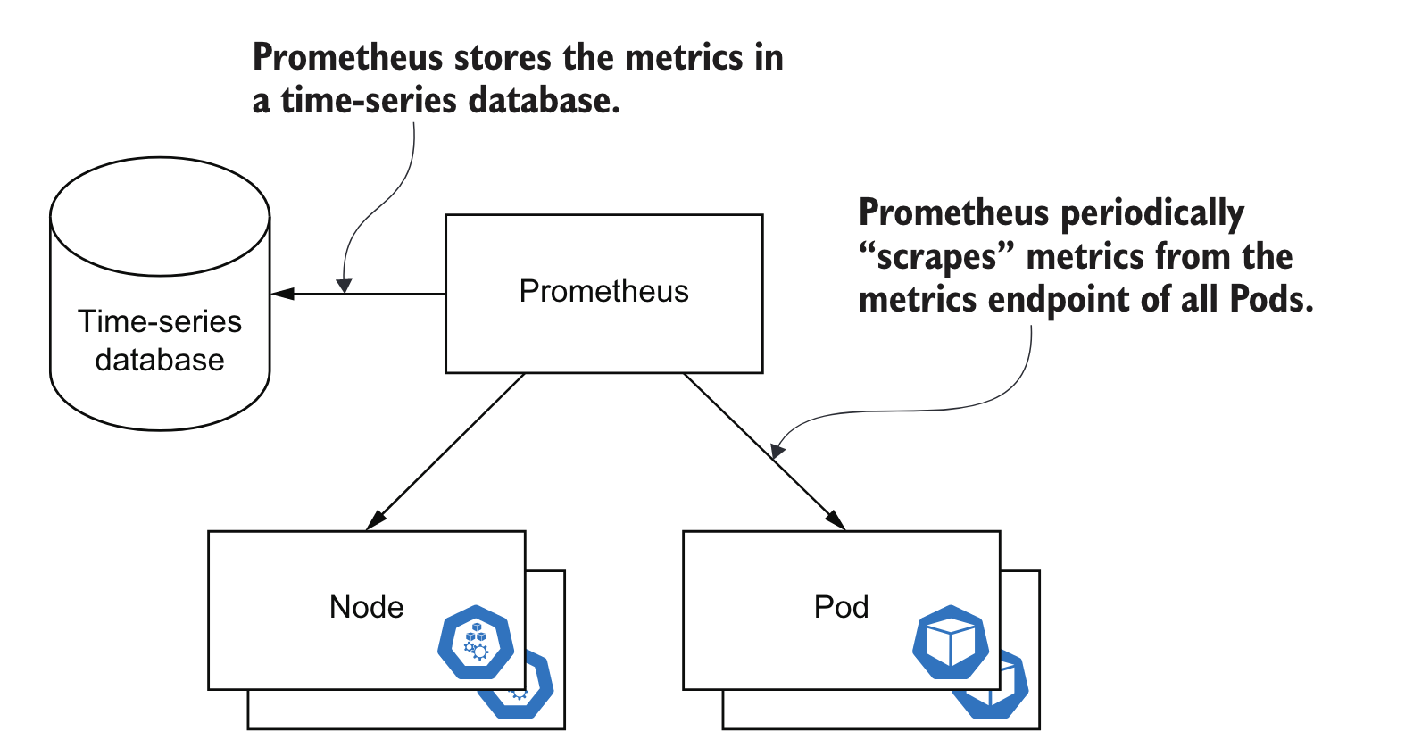 Prometheus 从节点和 Pod 收集指标,以提供所有系统组件的性能和操作的快照。