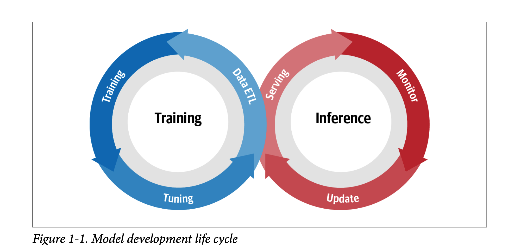 模型开发生命周期(Model development life cycle)(MDLC)是一个通常用于描述训练和推理之间的流程的术语。在触发模型更新时,整个循环再次开始。