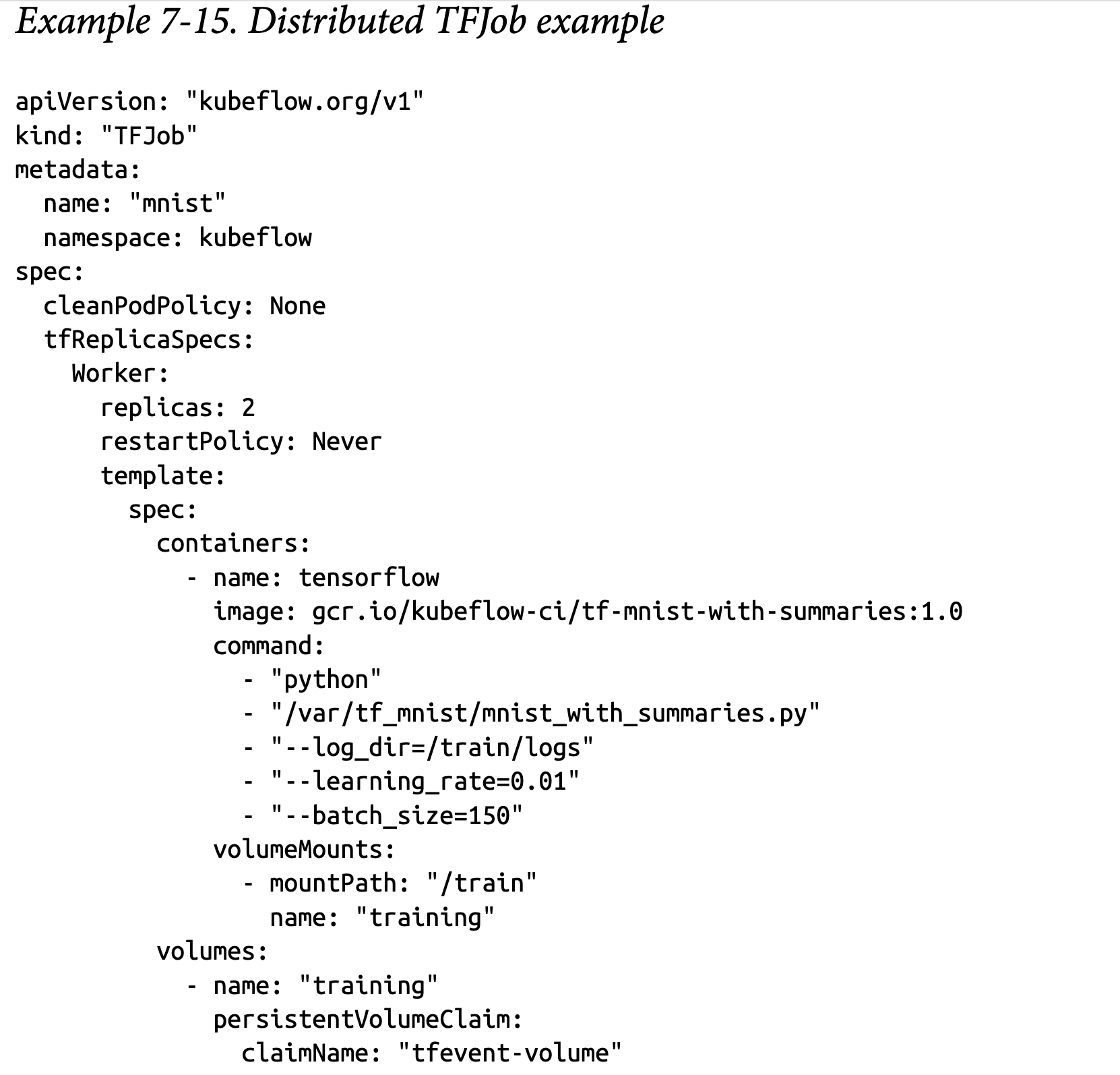 完成后,我们即可为TFJob创建规范,如示例7-11所示。