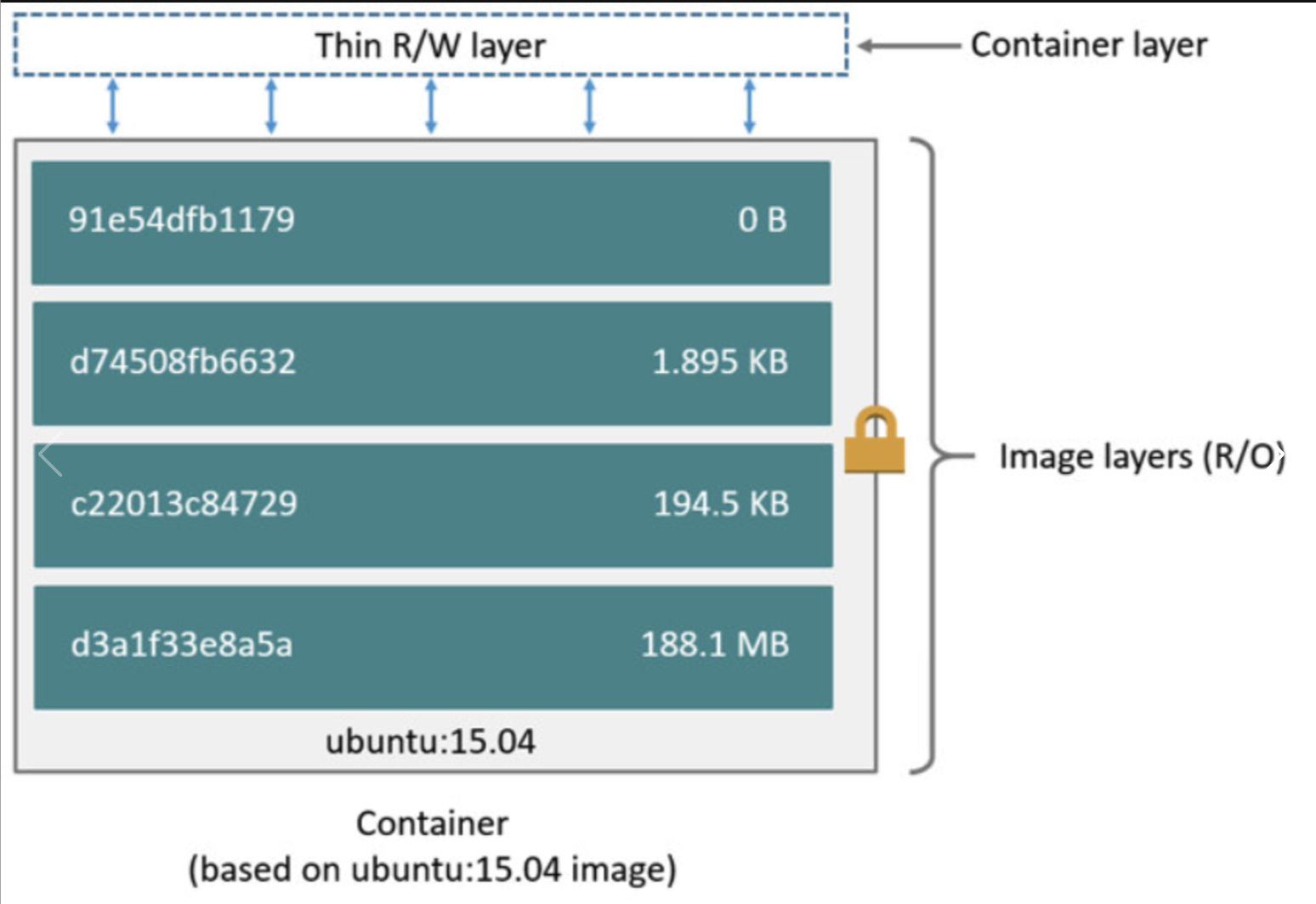 Docker的image是由一组layers组合起来得到的,每一层layer对应的是Dockerfile中的一条指令。这些layers中,一层layer为R/W layer,即 container layer,其他layers均为read-only layer,即 Image layer。