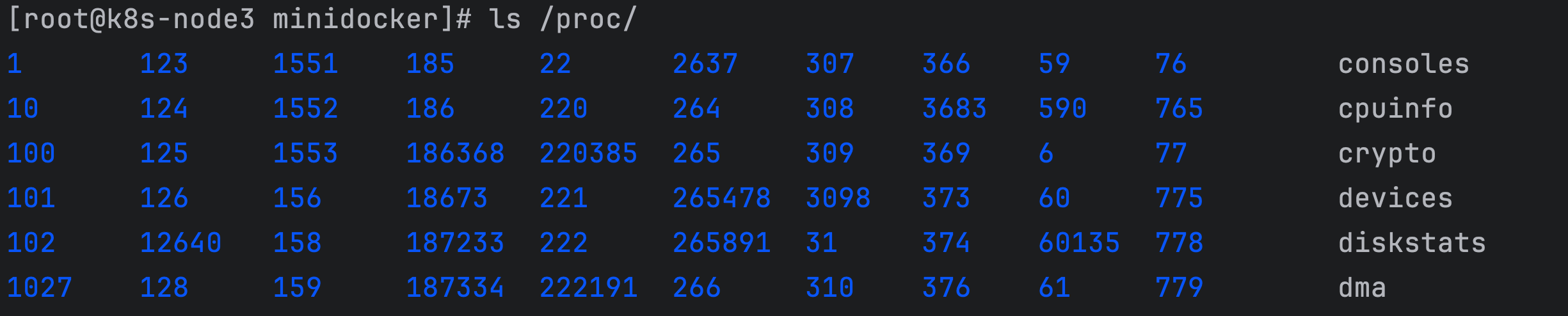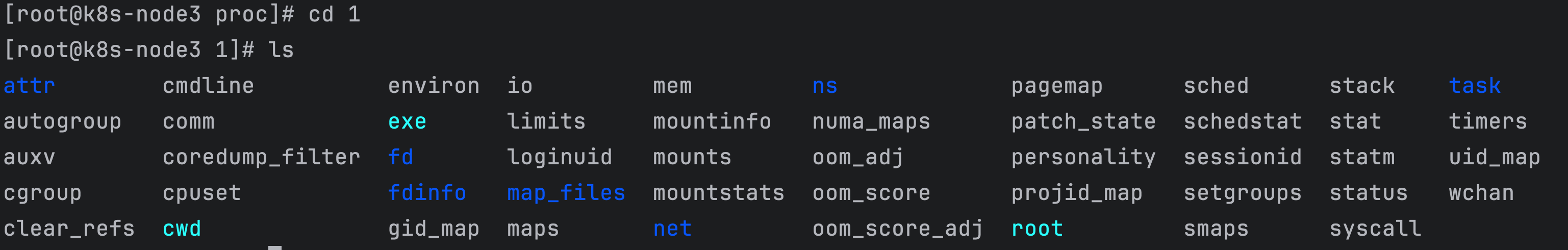 当遍历这个目录的时候,会发现很多数字,这些都是为每个进程创建的空间,数字就是它们的 PID 。